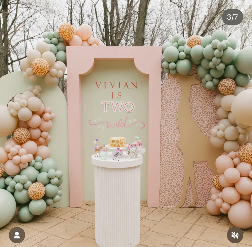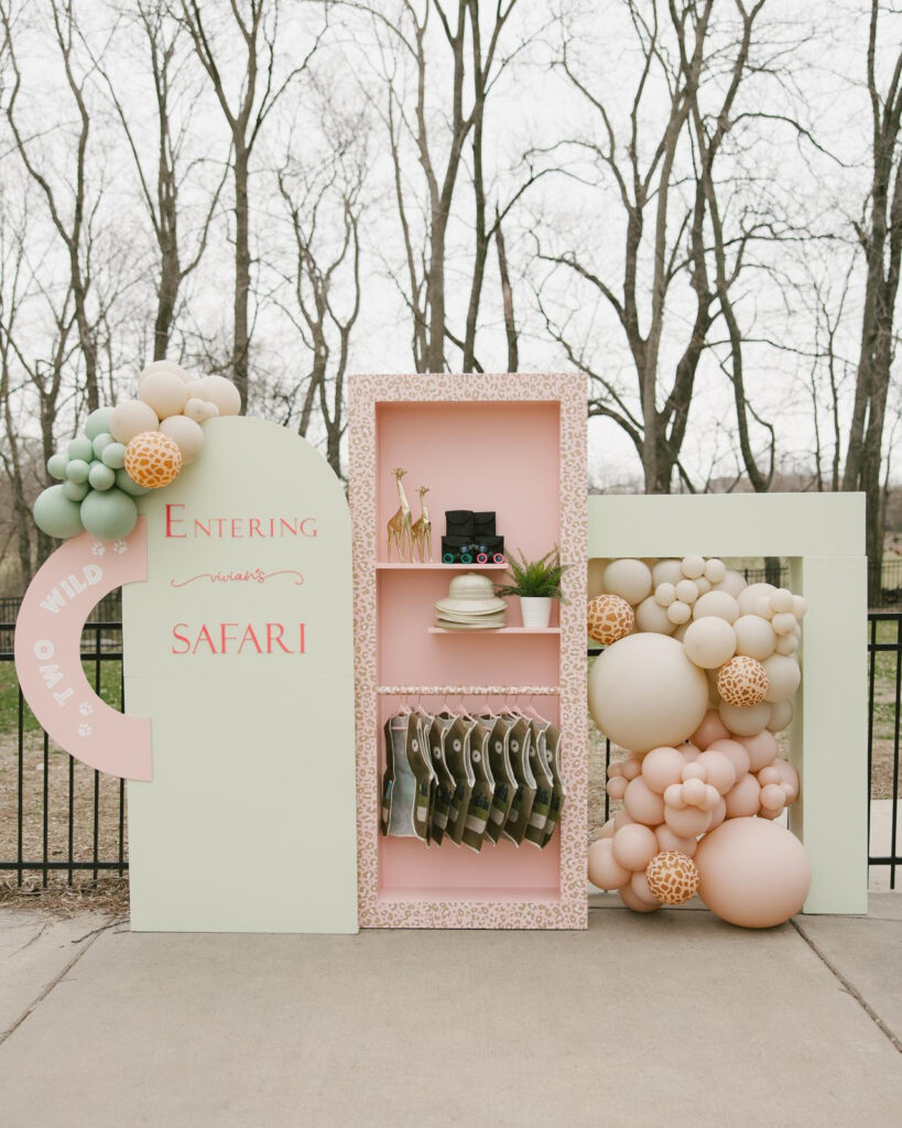 Guests were greeted by a custom entrance display that set the tone right away — “Welcome to Vivian’s Safari!” We played with different shapes and sizes to keep the design dynamic and abstract, while pastel pink and green accents softened the overall look.